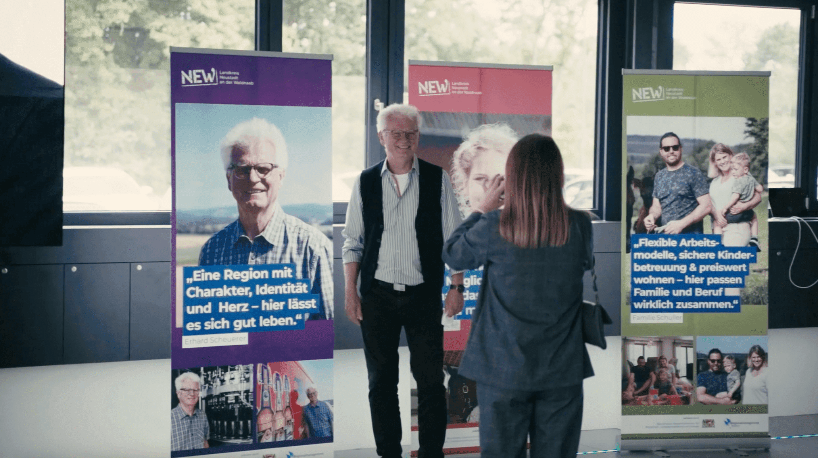 Die Kampagne implementiert die Werkzeuge aus dem Markenbildungsprozess und stellt eine ideale Fortsetzung der NEW Kampagne dar. Primär handelt es sich bei der Kampagne um eine Serie aus Imagefilmen. NEW lässt sich von Menschen aus dem Landkreis stellvertretend ihre Perspektive zeigen. Mit der gemeinsamen Botschaft: „Hier in NEW habe ich die beste Perspektive für mein Leben.“ Die Kernidee dabei ist es, „NEW Perspektiven“ tatsächlich auch künstlerisch als Kameraperspektive umzusetzen und die Sicht der Protagonistinnen und Protagonisten einzunehmen.