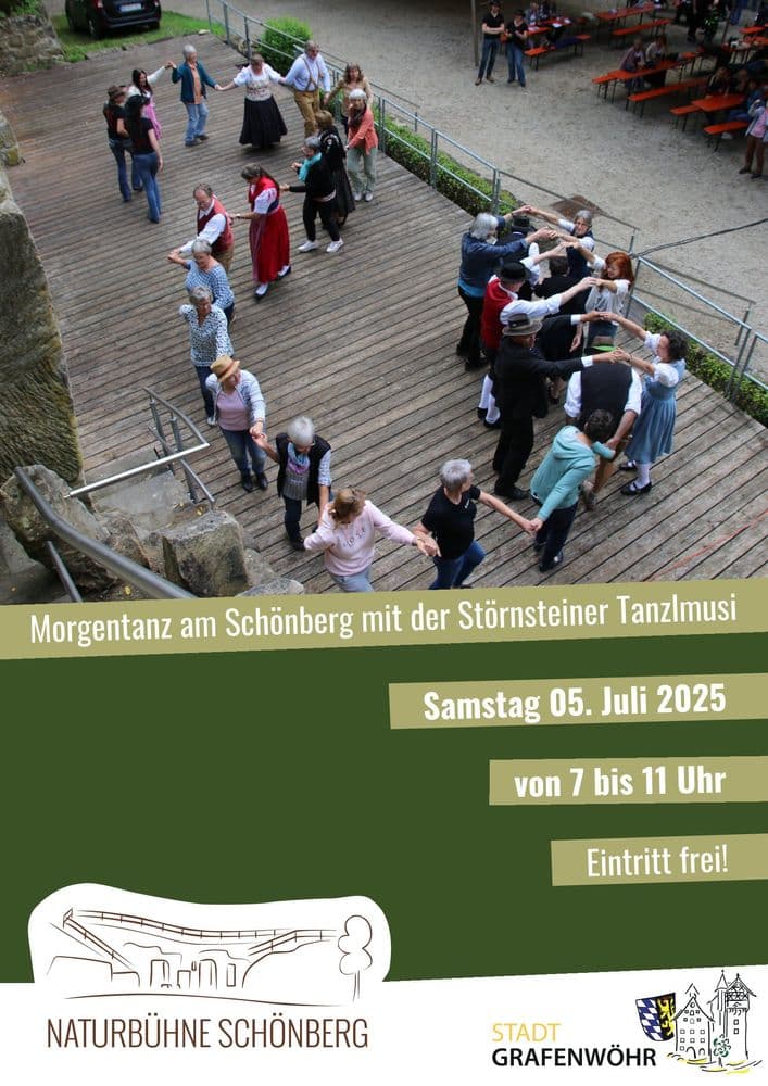 Freunde der traditionellen Oberpfälzer Volkstänze sind am 5. Juli in Grafenwöhr richtig: denn beim Morgentanz am Schönberg darf bereits ab 7 Uhr morgens beim Zw…